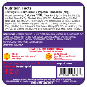 Light, fluffy, and packed with protein, these Vanilla Protein Pancakes are a delicious and nutritious option for any meal or snack. Made with eggs and cottage cheese, they’re naturally low in calories while delivering 20g of protein per pack.